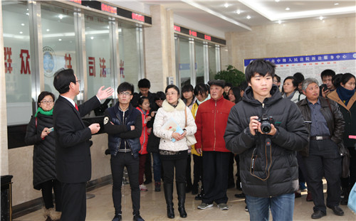 为展示人民法院司法为民、公众司法的良好形象,在全社会营造尊重宪法、信仰法律的良好氛围,市中院以12.4国家宪法日为契机,开展国家宪法日暨公众开放日系列活动。 活动邀请了人大代表、政协委员、公正司法监督员、媒体代表、社区代表、网友代表以及学生代表参加,代表们先后参观了诉讼服务中心、大法庭、羁押室、少年庭,直观的了解了法院的工作情况。